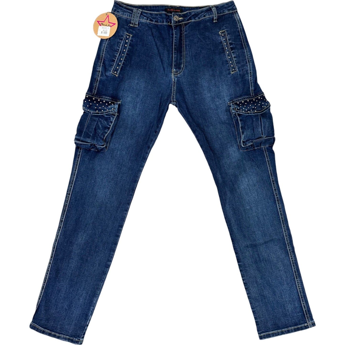 Damen Cargohose Jeans High Waist Cargo Hose Stretch Push Up Boyfriend Hüftjeans