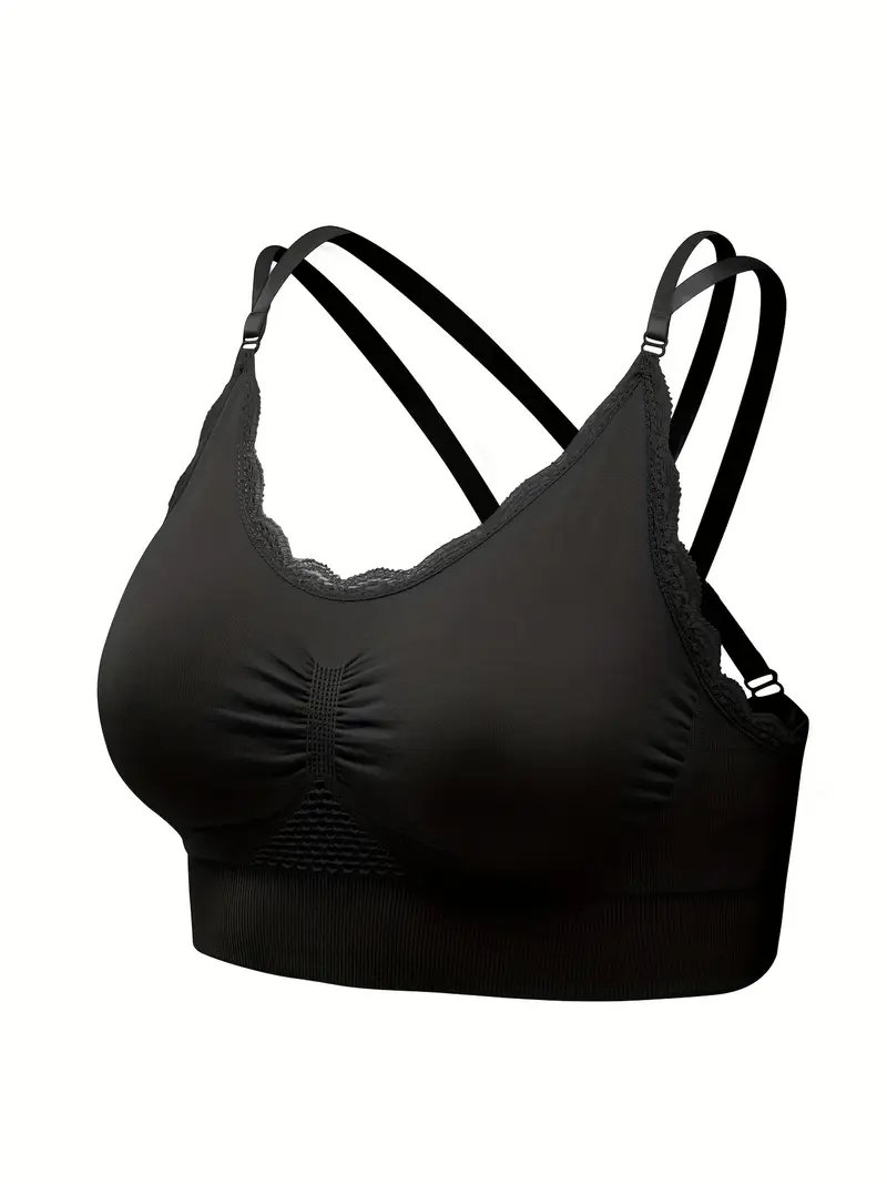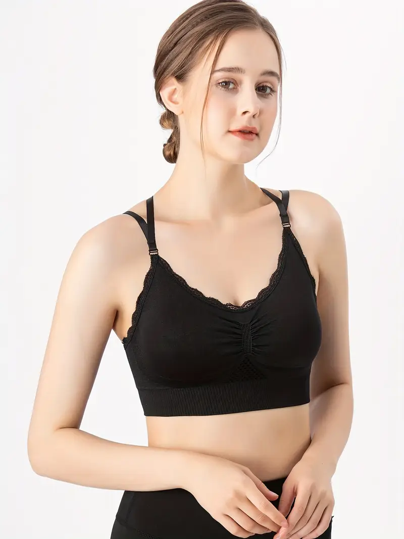 Damen Fitness Sport BH Bra Freizeit Nahtlose Drahtlos Spitzenbesatz Laufen