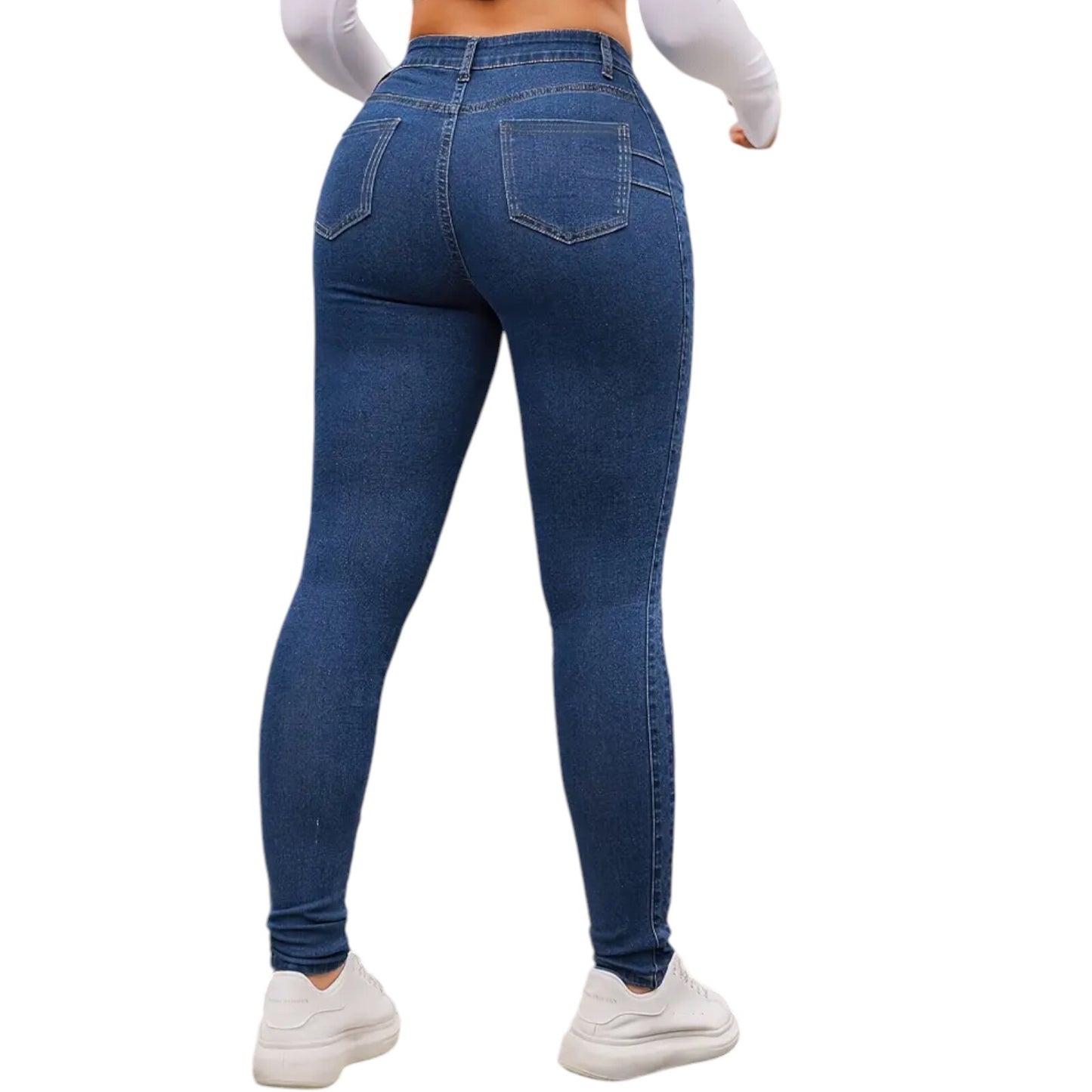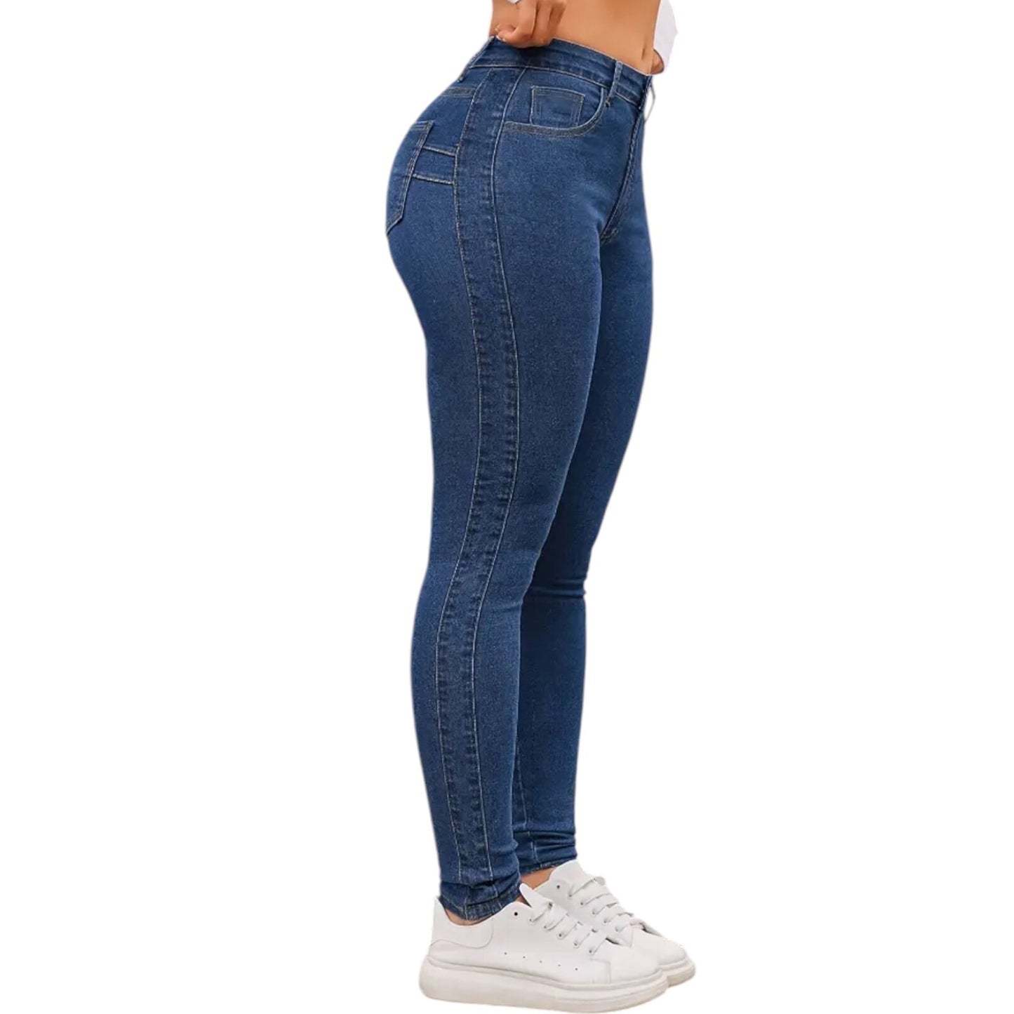 Damen Jeans High Waist Skinny Stretch Denim Hose Figurbetont Bequem Blau M-XL