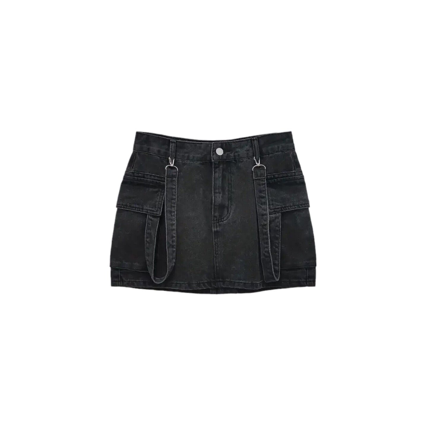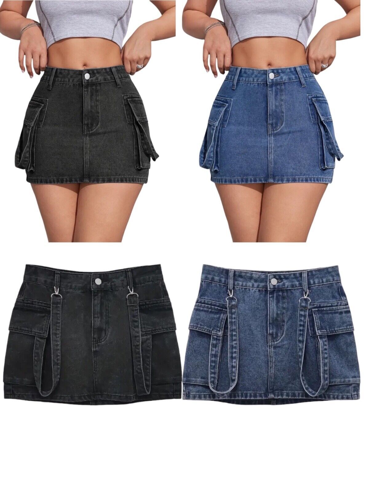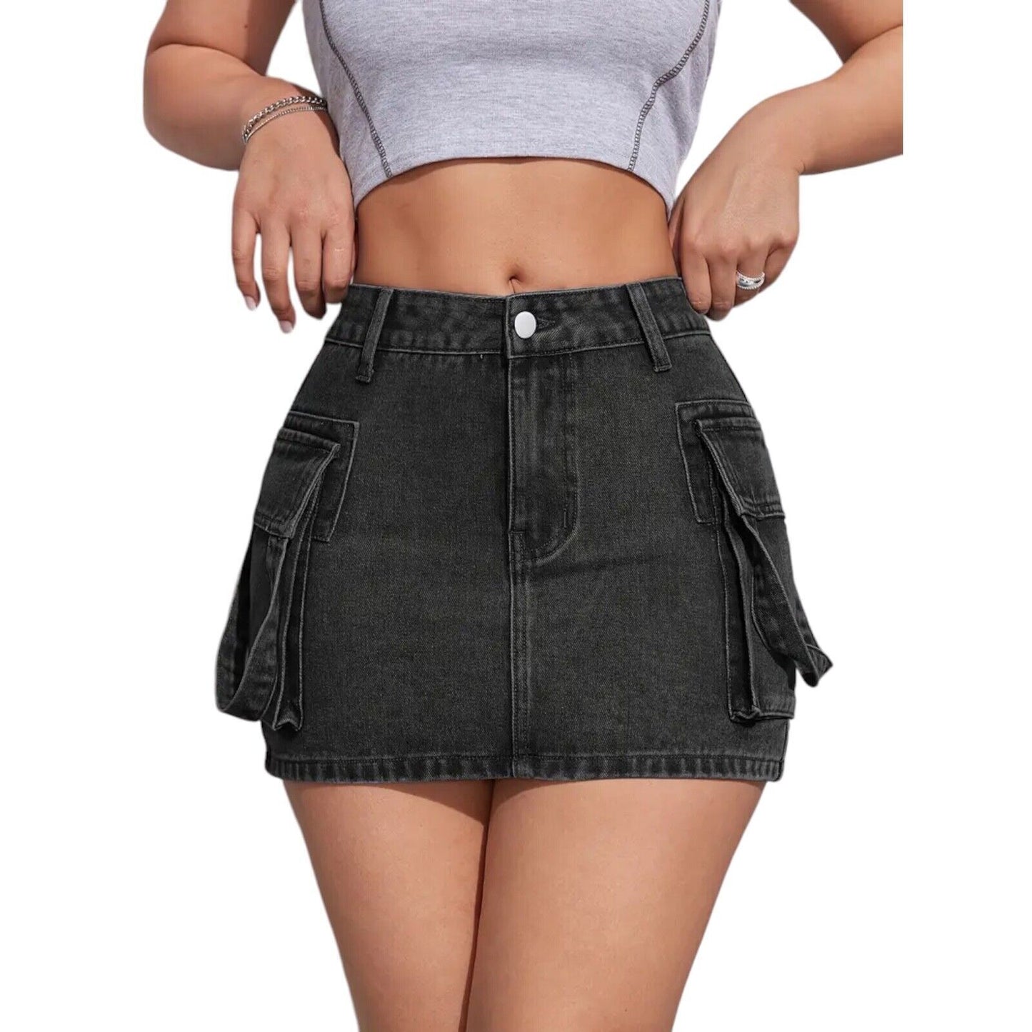 Damen Jeans Minirock Cargo Style mit Taschen High Waist Freizeit Rock Streetwear