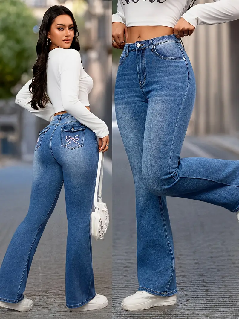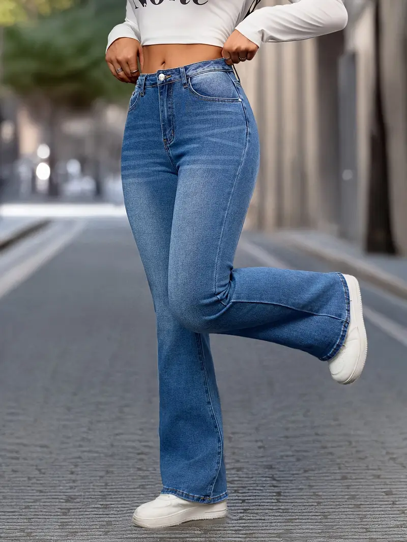 Jeans Damen High Waist Schlaghose Bootcut Denim Stretch lässig Weit Bein sexy