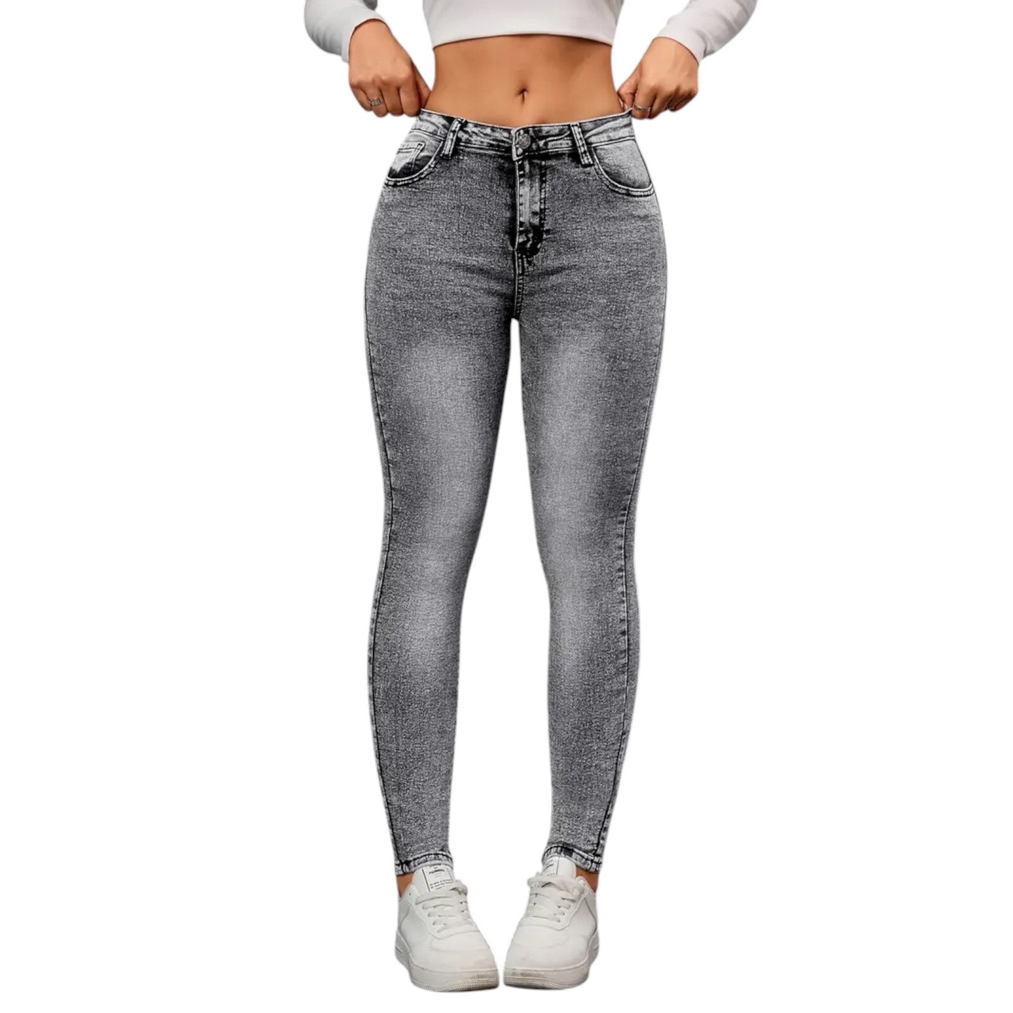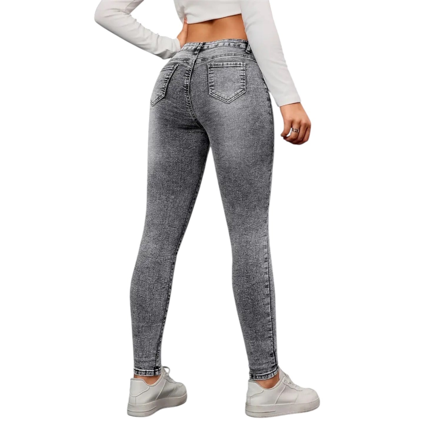 Diese Damen Jeggings im angesagten Jeans-Look kombinieren Komfort und Stil perfekt! Der elastische Stoff sorgt für ein angenehmes Tragegefühl, während der High-Waist-Schnitt eine schöne Figur zaubert. Die graue Waschung im Used-Look macht sie zum idealen Begleiter für lässige Freizeit-Outfits oder trendige Streetstyle-Looks.