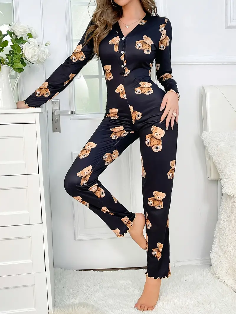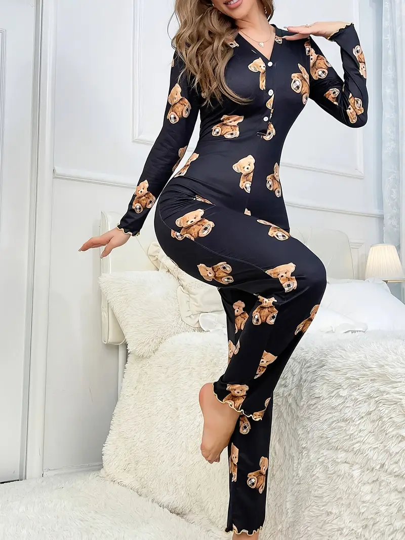 ❤️ Damen Pyjama Set mit Teddybär-Print ❤️