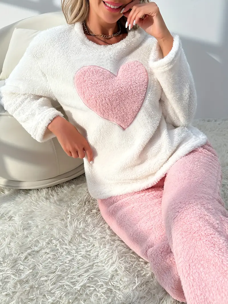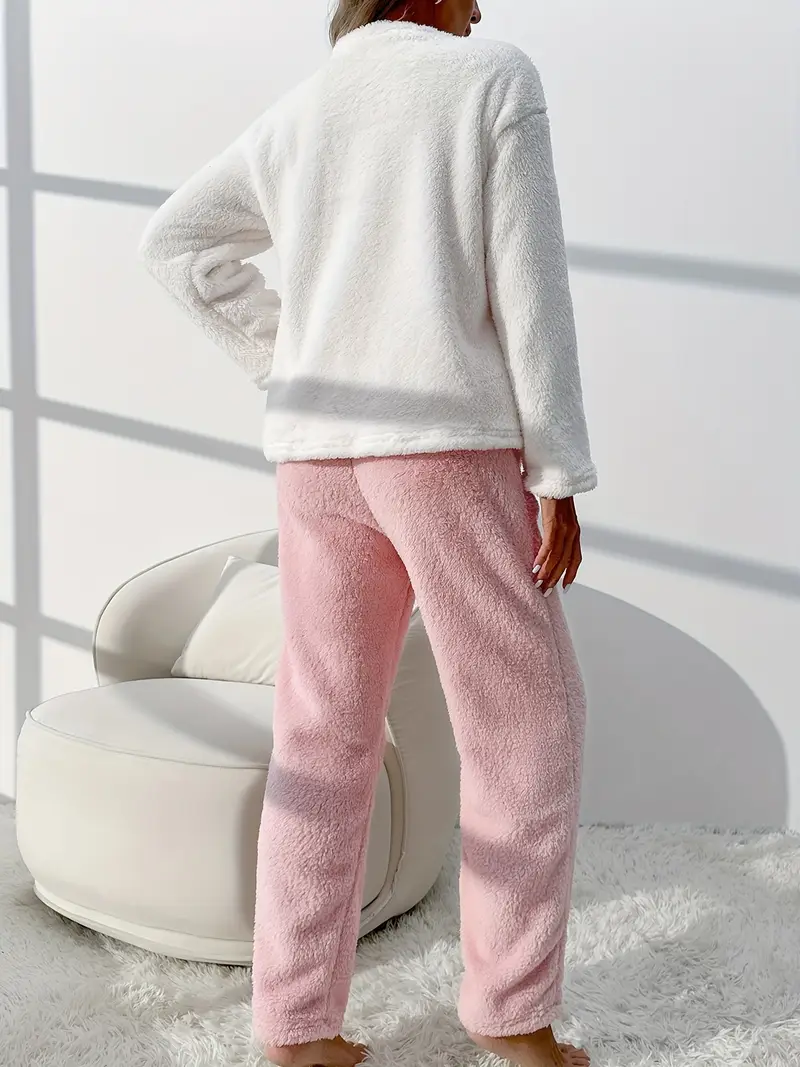 Damen Schlafanzug Pyjama Winter Fleece Kuschelig Flauschig Warm Weich Frauen Set