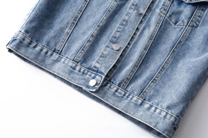 Jeansjacke Damen Blau Knopfleiste Taschen Lockerer Schnitt Casual Streetwear