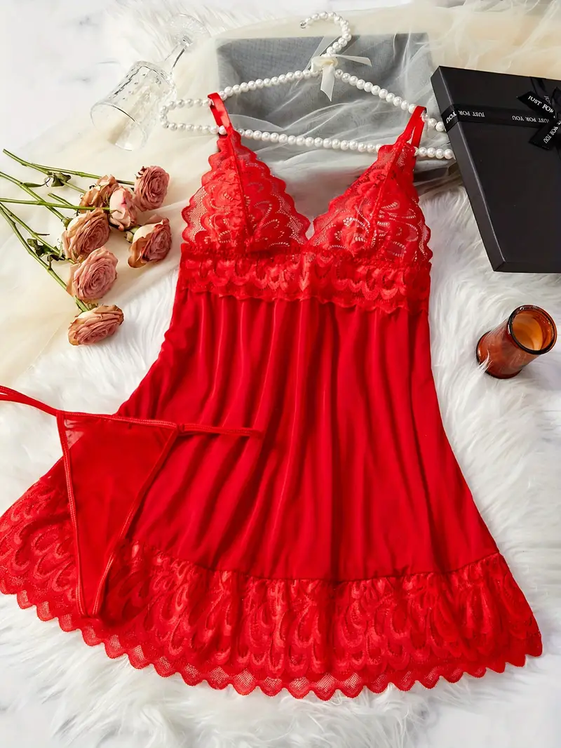 Sexy Negligé Nachthemd Dessous Set Nachtwäsche Lingerie Spitze Rot S–XL