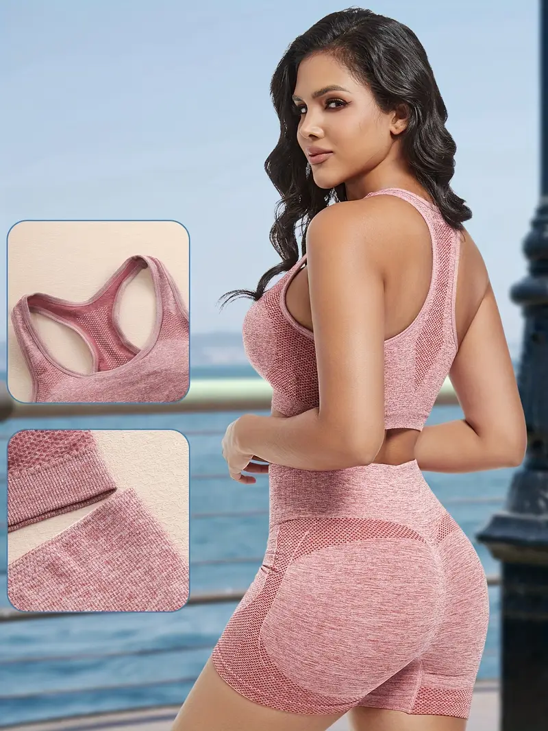 Sport BH Shorts Set Damen Yoga Fitness Nahtlos Freizeit Atmungsaktiv Bequem S-XL