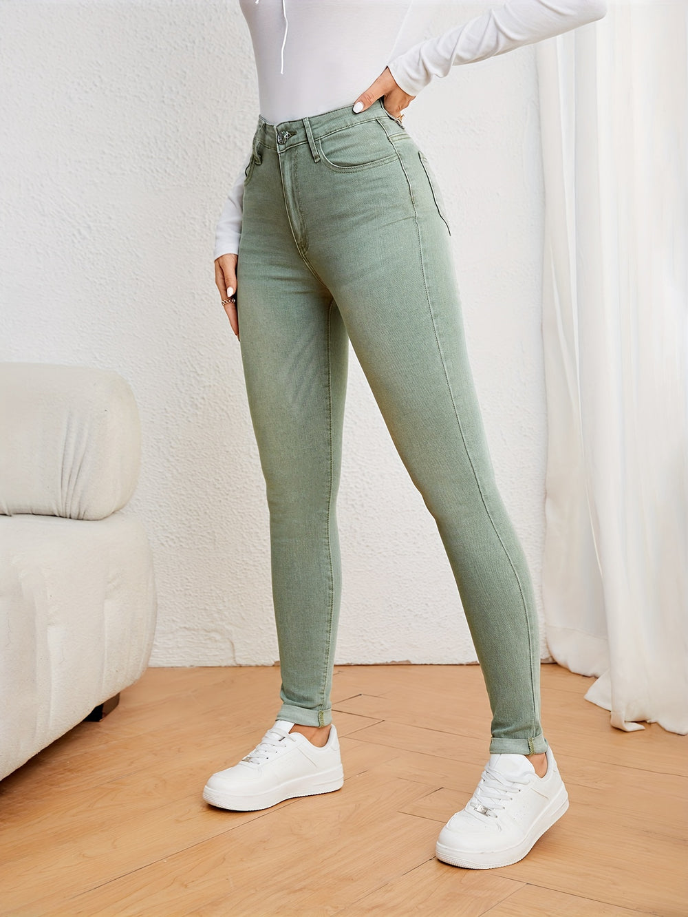 Diese moderne Skinny Jeans mit hohem Bund vereint Stil und Komfort. Sie schmiegt sich perfekt an die Figur an, ohne einzuengen, und ist durch ihre Elastizität ideal für den Alltag, Freizeit oder einen lässigen Streetstyle. Die Jeans lässt sich vielseitig kombinieren – mit einem Top für den Sommer oder einem Pullover für kühlere Tage.